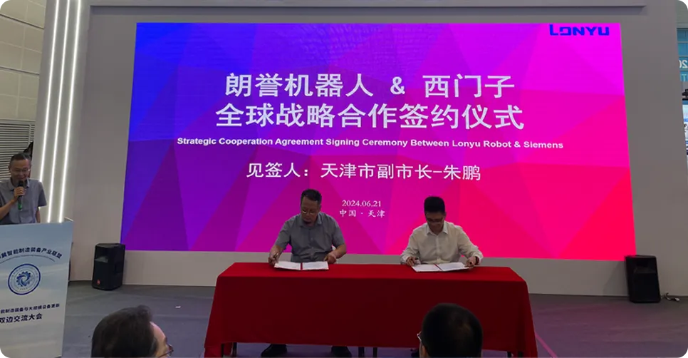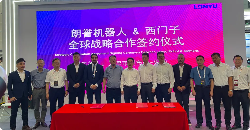 【概要描述】6月21日,在世界智能产业博览会上,天津市副市长朱鹏、天津市工信局局长尹继辉莅临《朗誉机器人第二季度全球发布会》现场指导工作,见证了朗誉机器人与西门子、SEW签署全球战略合作协议,为朗誉机器人坚持产品研发、积极扩大海外影响力带来了动力,未来朗誉将发挥自身优势,优化产业布局,不断完善全球化战略布局。